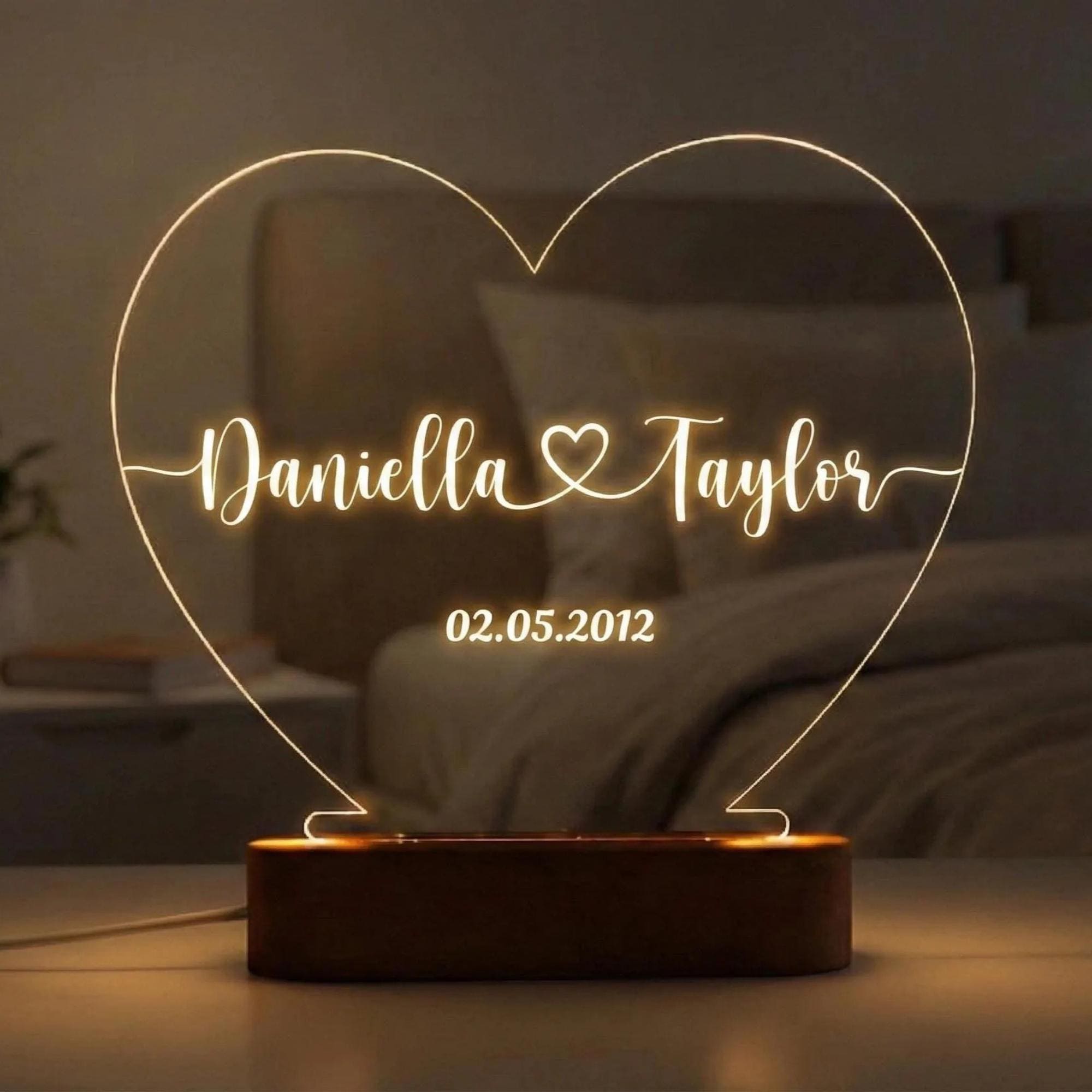 Custom Heart LED Night Lamp, Personalized Name Light for Couples, Romantic Bedroom Decor Wedding Anniversary Gift