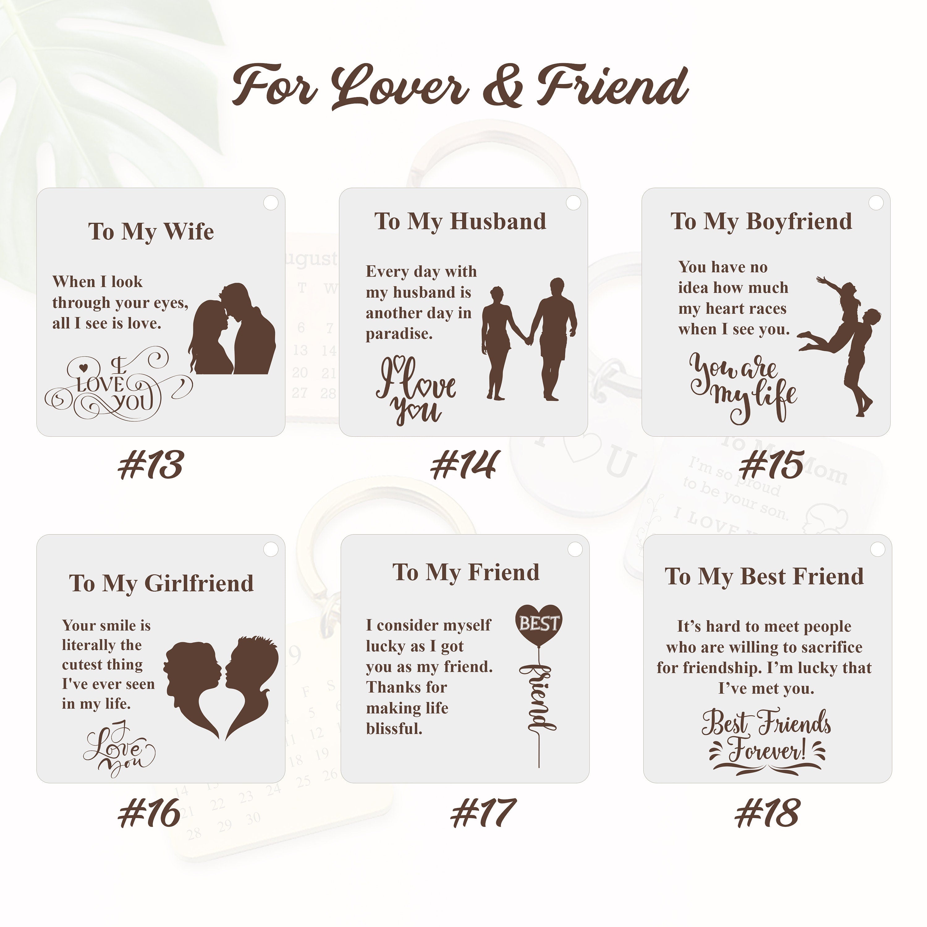 Your loved ones deserve a gift that's as unique and special as they are. That's why we've created personalised keychains — they're the perfect way to tell someone how much they mean to you. Our keychains are crafted from high-quality materials, laser engraved with your and your loved one's birthday calendar, making a perfect gift for lovers, friends and family members. A perfect personalised gift for anniversaries, graduation, friendship, boyfriend, girlfriend, Mother's Day, Father's Day, thanksgiving day, etc.
