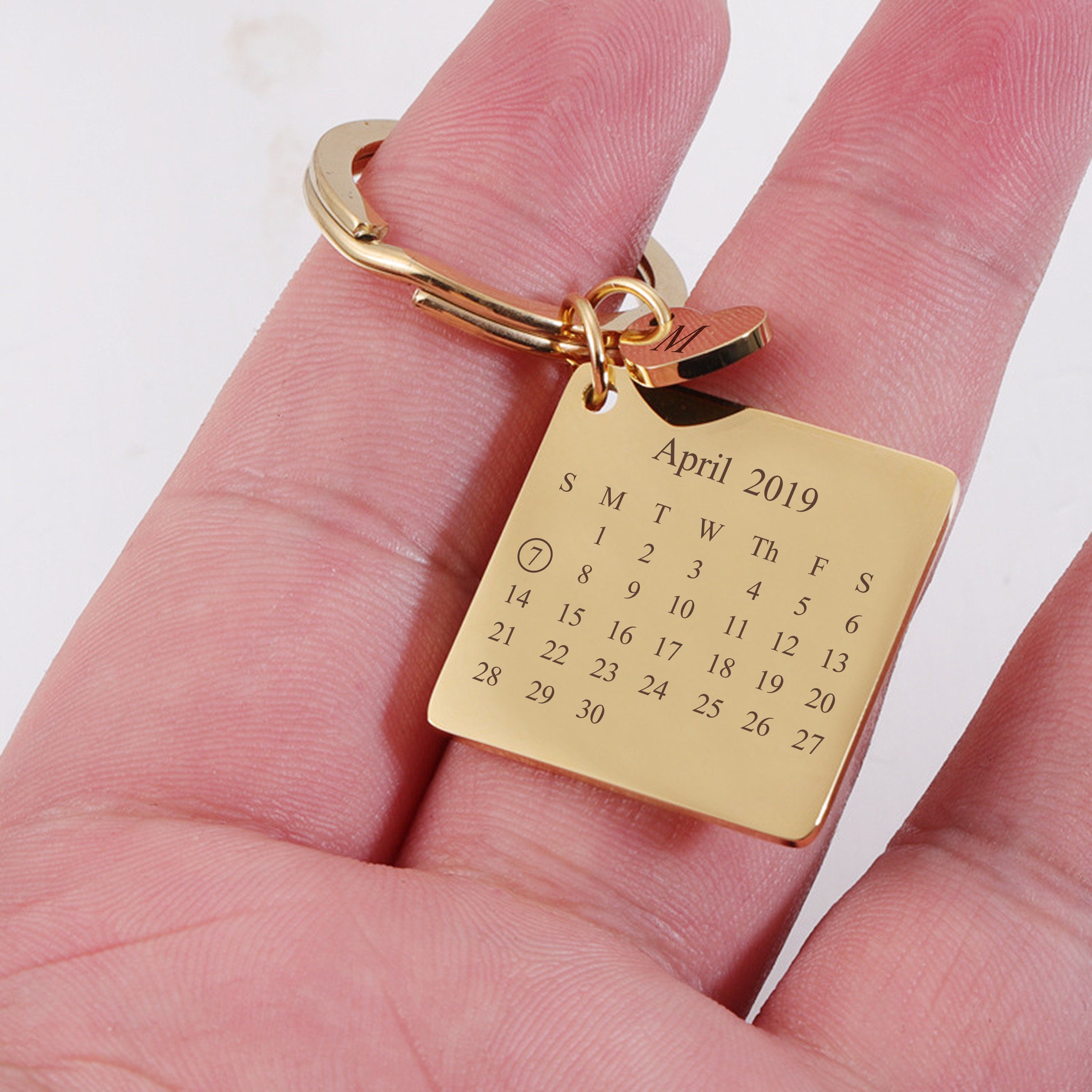 Personalized Calendar Keychain, Custom Date Keyring with Heart Charm, Engraved Stainless Steel Gift for Anniversary, Wedding or Birth Gifts