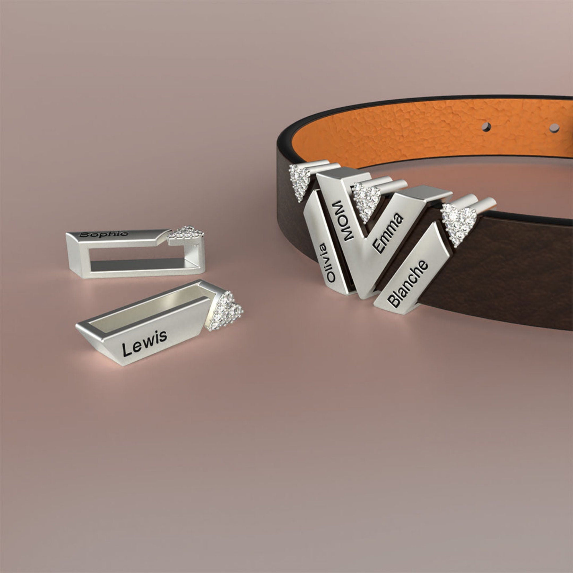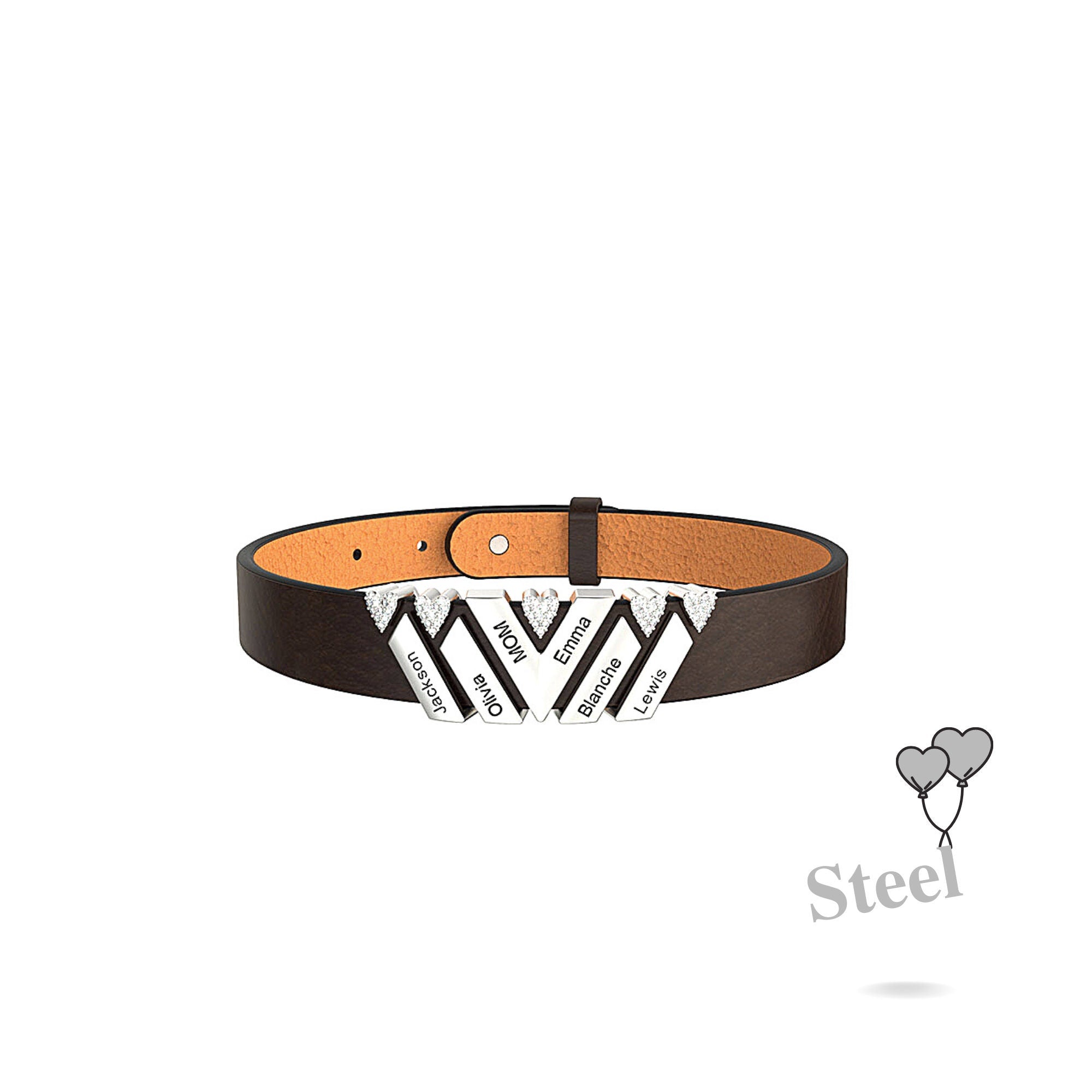 It is crafted from high-quality leather and stainless steel and is available in three colors (steel, rose, and rose gold). Also, it features customizable lettering, allowing you to personalize the V-shaped beads with up to five of your favorite names 😮.
