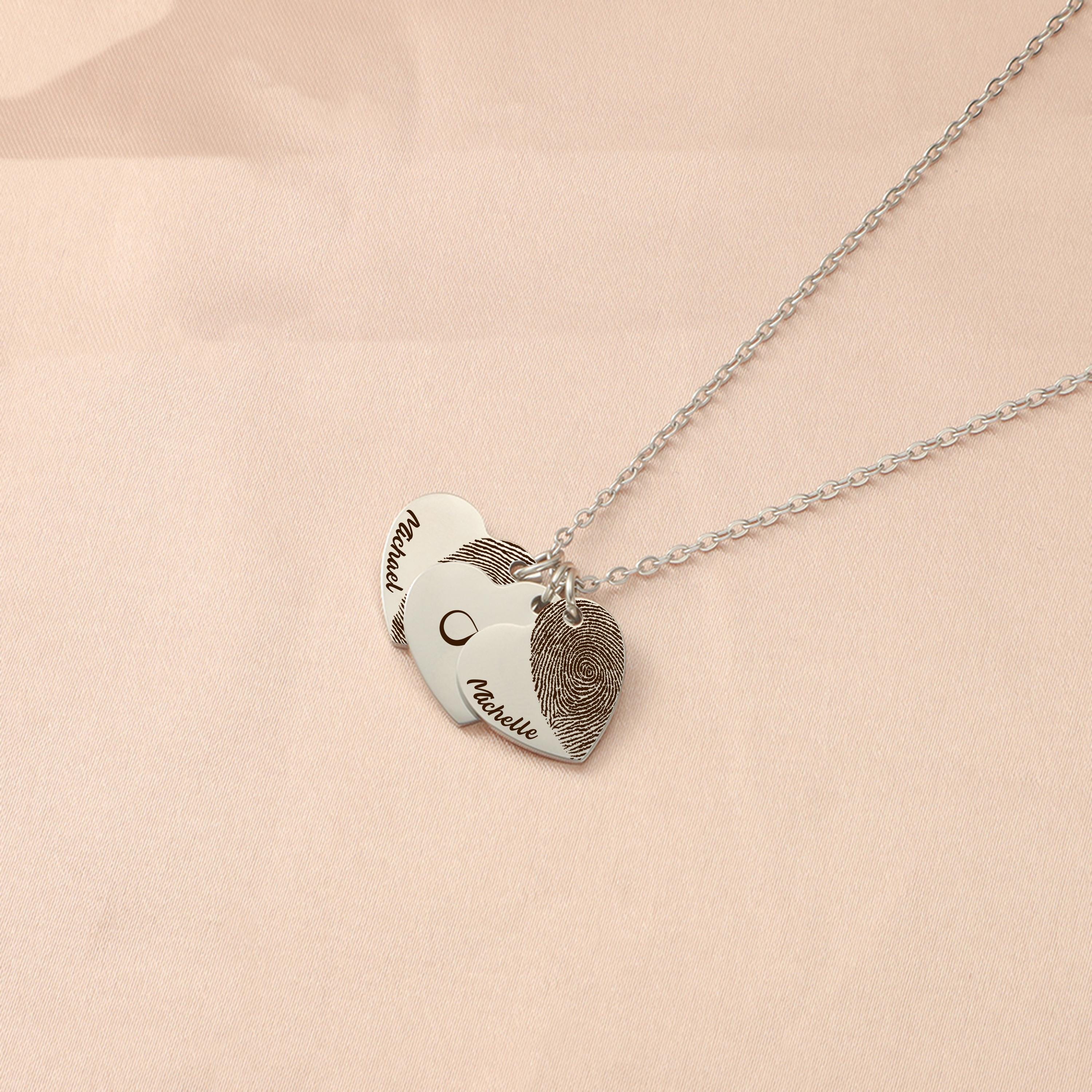 Personalized Fingerprint Heart Necklace, Custom Engraved Memorial Jewelry,Stainless Steel Pendant with Name, Gift for Mom, Dad, or Loved One