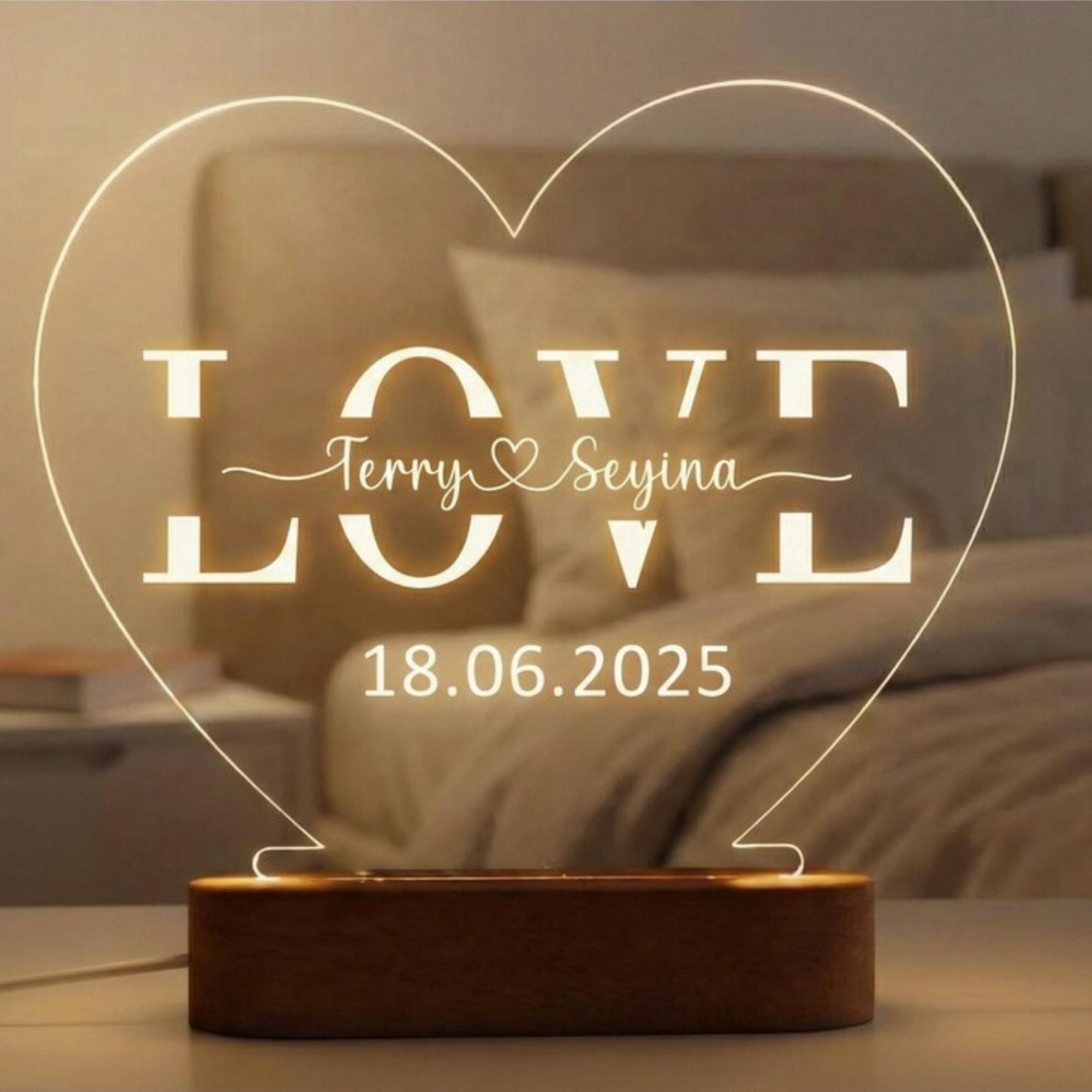 Valentines Day Couple Night Light, Personalized Heart LED Lamp for Wedding Engagement Anniversary Gift